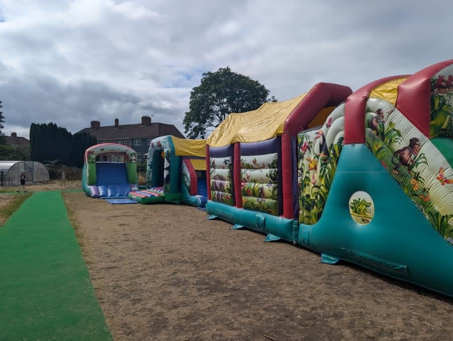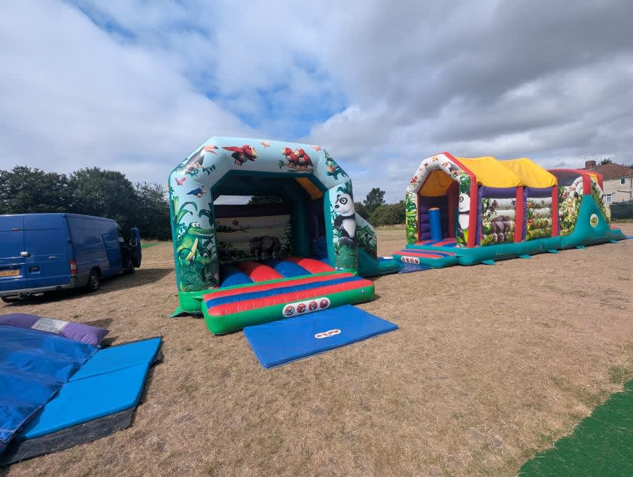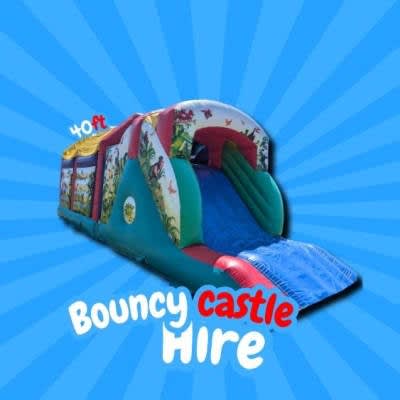 🌴 40ft Jungle Assault Course – a long inflatable with pop-ups, crawl tunnels & slides.
