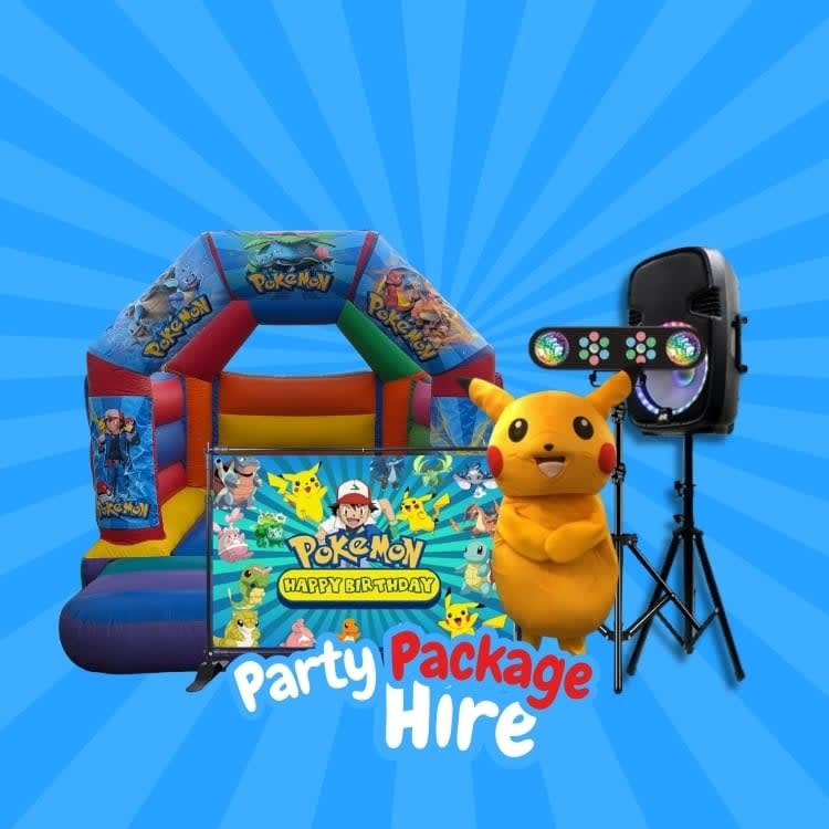 Pokemon Self-Hire Party Package | Pokemon Themed Bouncy Castle Hire | Pokemon Mascot Costume Self-Hire | Pokemon Party Backdrop Hire | Pokemon Disco Lights & Music Package | Pokemon Party Entertainment Package | Complete Pokemon Party Hire | Kids Pokemon Party Hire
