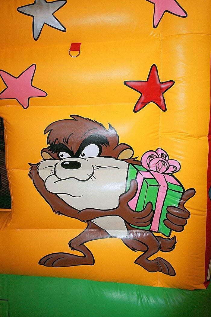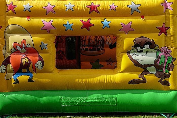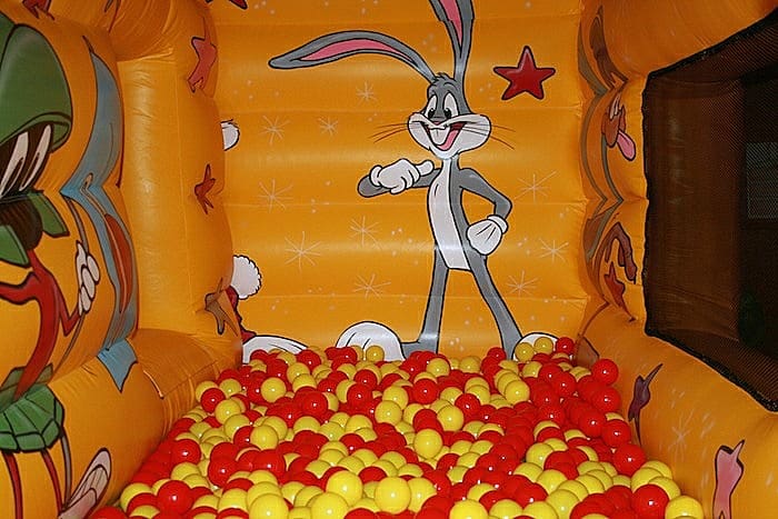 This is our very colorful toddler castle with room to bounce but also added attraction of a ball pit full of picture's of all your favorite cartoon character's Come's complete with 1,000 assorted coloured ball,s (not just red and yellow as in photo) (Indoor Hire only)